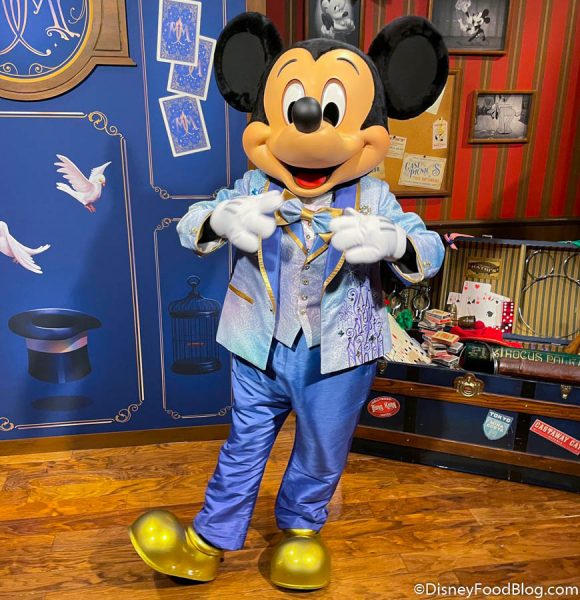 Mickey used to meet here in a sweet magician’s outfit. Now, he’s wearing his snazzy EARidescent threads.