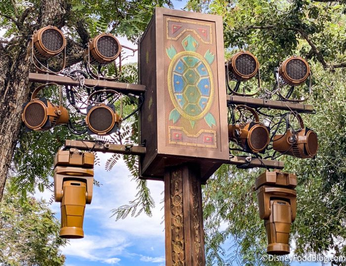 Over on Discovery Island, we spotted some signs that Christmas is coming to the Animal Kingdom soon! (Don’t @ us, we know Halloween hasn’t happened yet — but you’ve got to be prepared for the holiday season that’s following right on its heels.) There were new Christmas decorations up, like these artistic bird sculptures…