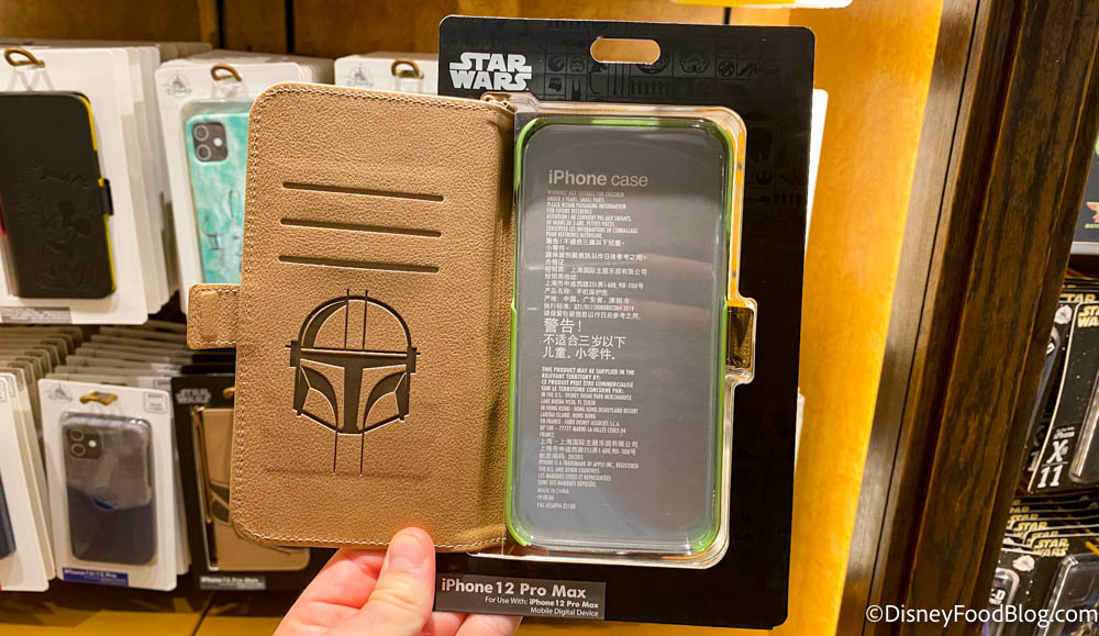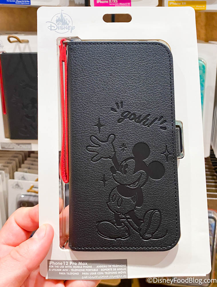 The Darkroom had a few new phone cases, including two that flipped open and had spaces for cards inside. They both have a wrist loop as well, to make carrying your phone less of a hassle. The first was Mickey Mouse-themed, with a black leather case and Mickey on the front.