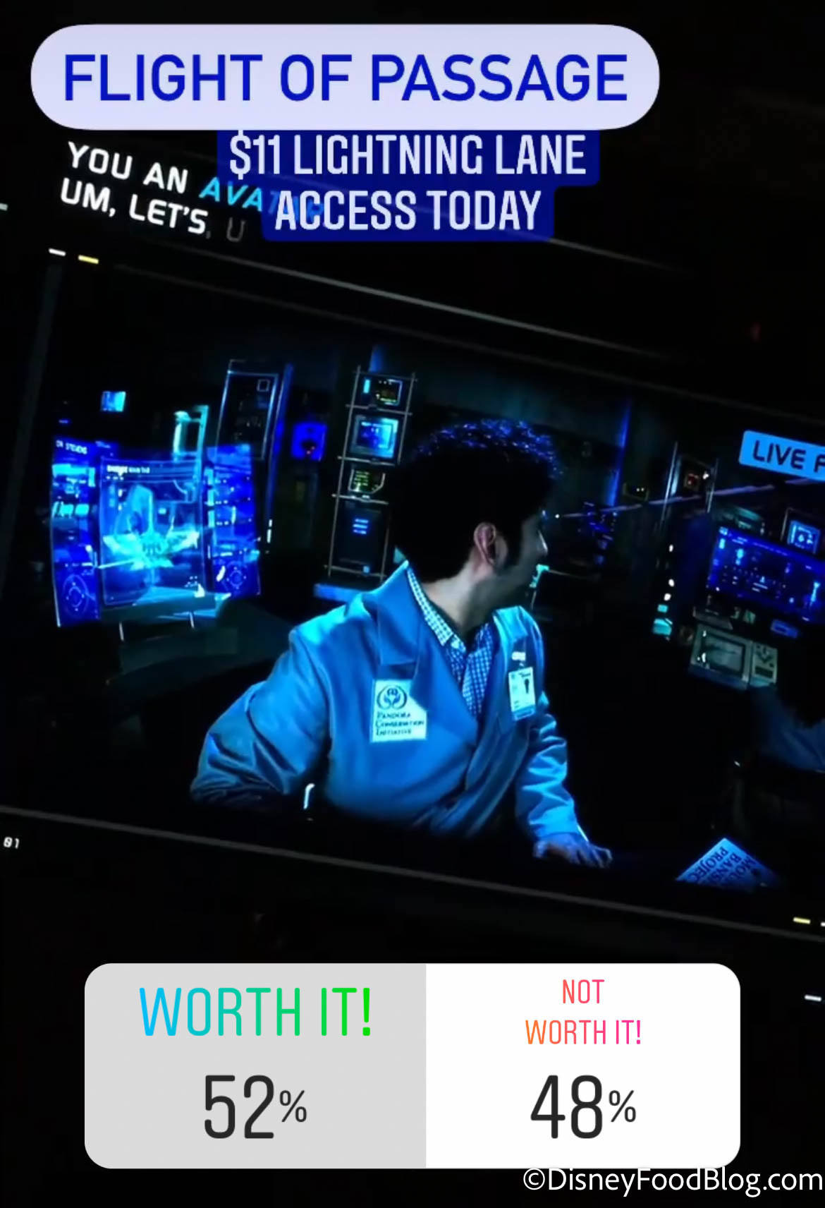 And we finally get to a ride voted worth it! With an $11 Lightning Lane, Avatar Flight of Passage in Disney’s Animal Kingdom was voted worth it by 52% of readers.