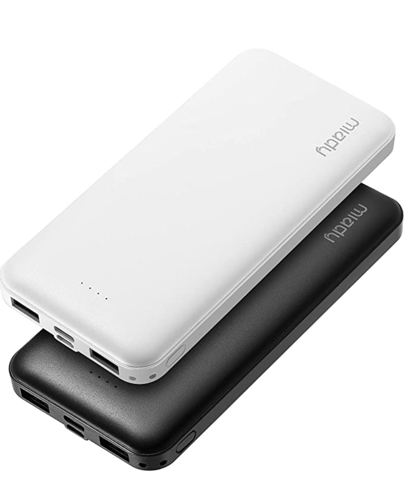 One of the options we found online was the Miady portable charger for $19.99. It comes with not just one, but TWO power banks, with TWO charging ports on each bank. (Plus they come in fun colors too!)