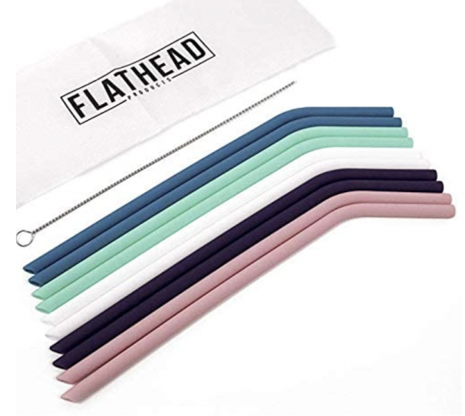One of our favorite reusable straw brands that we’ve found online is the Flathead 10-set with an included cleaning brush for $10.95.