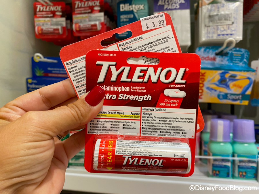 **NOTE: If you are in DESPERATE need of Tylenol or a number of over-the-counter meds, swing by one of the First Aid Centers and a Cast Member can often give you single-serve doses of these medications for free.**