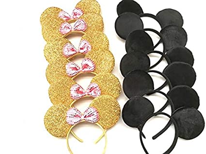CLGIFT Set of 12 Minnie Mouse Ears, Ears, Mickey Mouse Ears, Theme Party, Boys and Girls One Size Fits All (6 Gold w/Light Pink & 6 Plain Black) for $15.99 ©Amazon