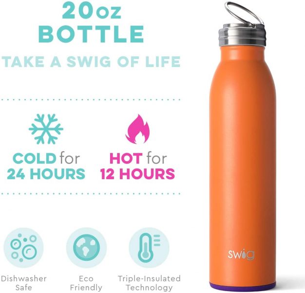The Swig Life water bottles have been a favorite option of ours in the past. They’re lightweight and triple-insulated!