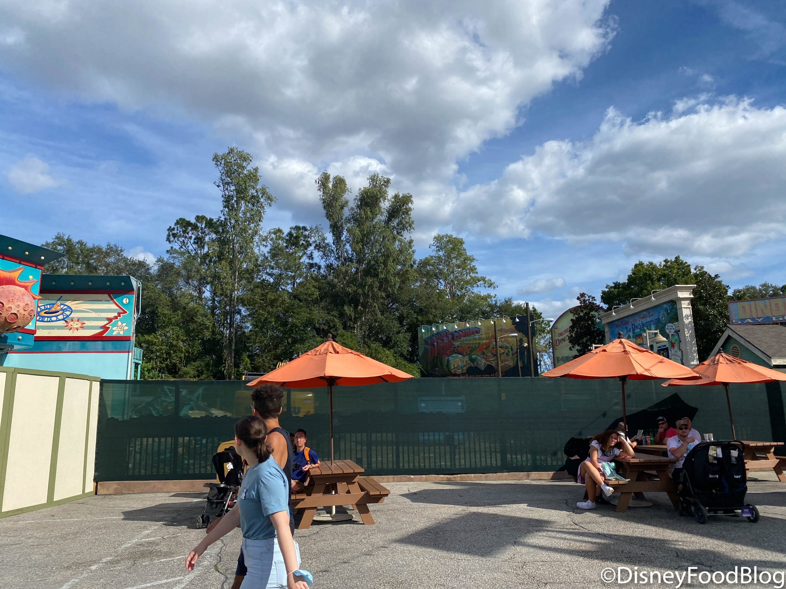 And, lastly, we stopped over at Disney’s Wilderness Lodge to check out the greatest Halloween treat glow-up of 2021. And, after demolishing the new(ish) cupcake, we looked up to see that the outdoor dining patio at the Roaring Fork is now blocked off by construction walls.