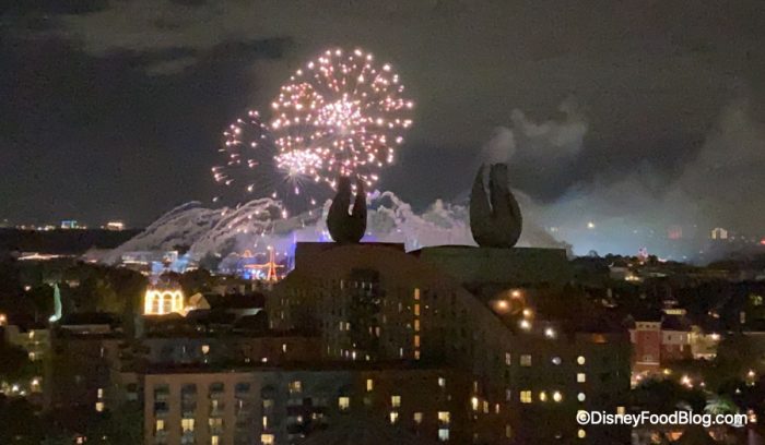 Disclosure: In nearly all circumstances, Disney Food Blog writers and photographers pay full price for their own travel, hotel, food, beverage, and event tickets. We do this because it’s important to us as journalists to ensure not only that we give you unbiased opinions, but also that you can trust us to do so since we’re paying our own way. On rare occasions, when we are invited by a company to attend a preview as media, and when we choose to accept that invitation, we will always make you, our readers, aware of that situation. Today, we were invited by Disney World to attend their media event for fireworks on top of the Walt Disney World Swan Reserve. Note that when we attend events as media we are 1) Not required to review that event/food on any of our channels, and 2) Not required to review that event/food favorably. You can always count on DFB to give you a 100% unbiased and honest review of any event that we attend, food that we eat, or beverage that we drink. You can see more in our Disclosure Policy. Thank you for reading. — AJ