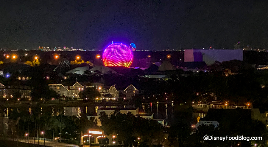Not only that, but you can see Spaceship Earth all lit up for its beacon look, too!
