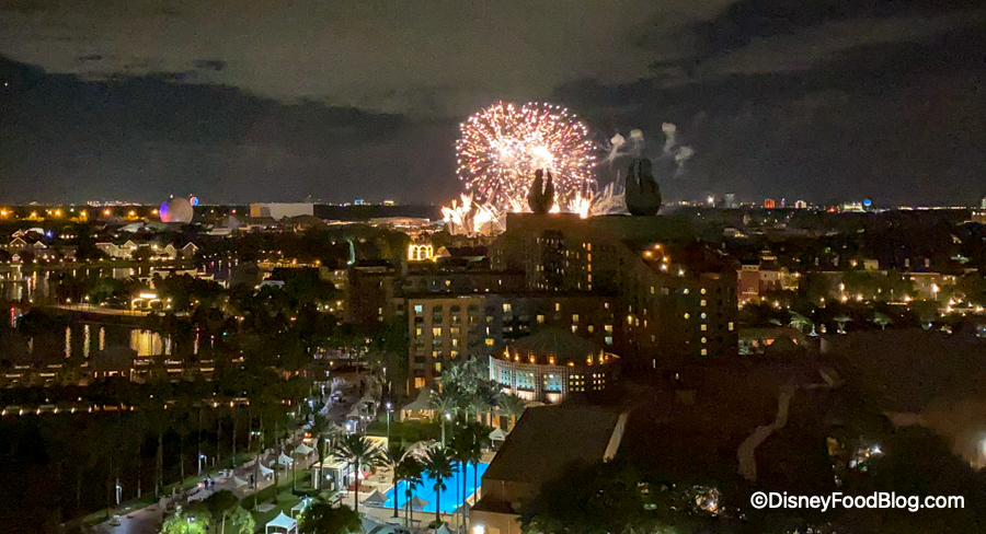 During our visit to the Swan and Dolphin hotel for the Food & Wine Classic event, we got to check out the Swan Reserve hotel. While we were visiting the new hotel, we had a STUNNING view we HAD to share! Is this a new favorite firework viewing location? You decide!