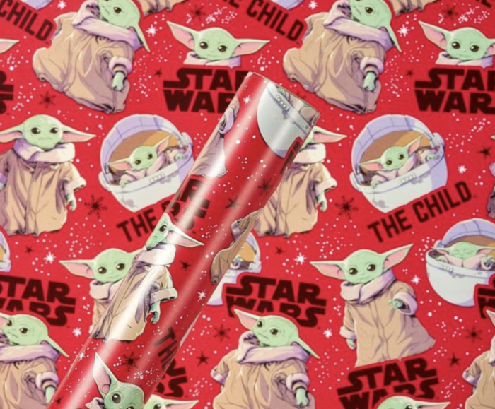 Another fun design is this Star Wars Mandalorian gift wrap featuring The Child!