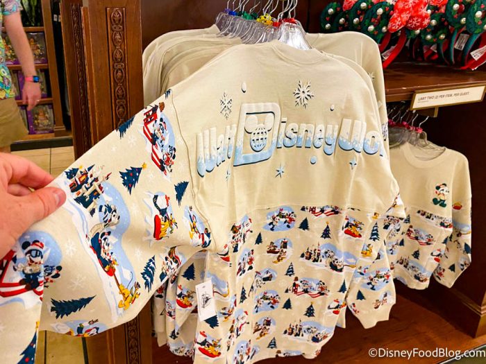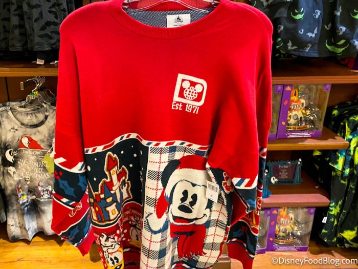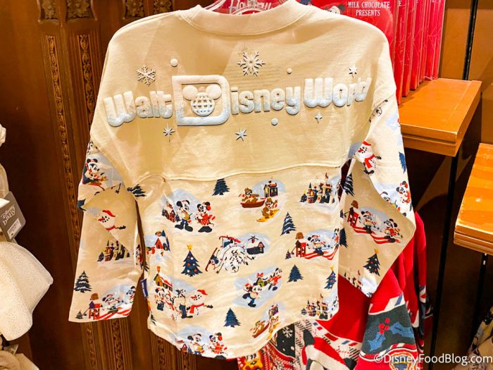 You can get a similar red holiday spirit jersey online for the same price. The main difference is that the one online says “Seasons Greetings” on the back instead of “Walt Disney World.”