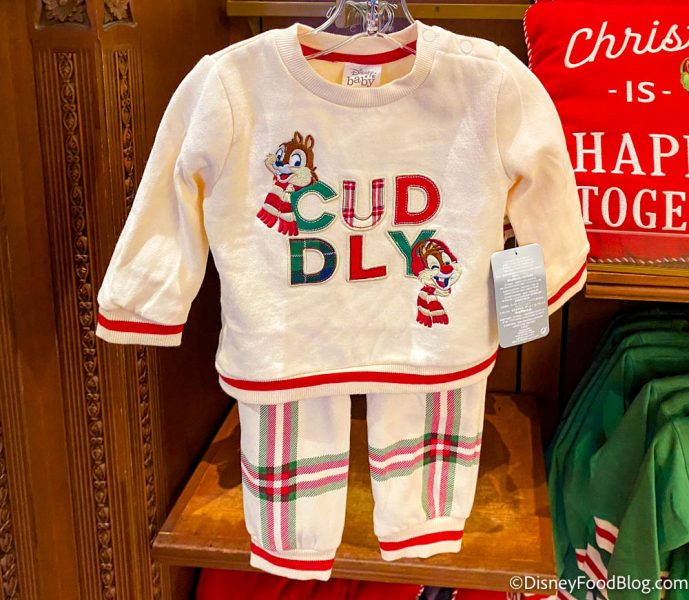 For the littlest ones, there are a lot of cute outfits available now. We found a “Cuddly” outfit with Chip and Dale for $34.99…