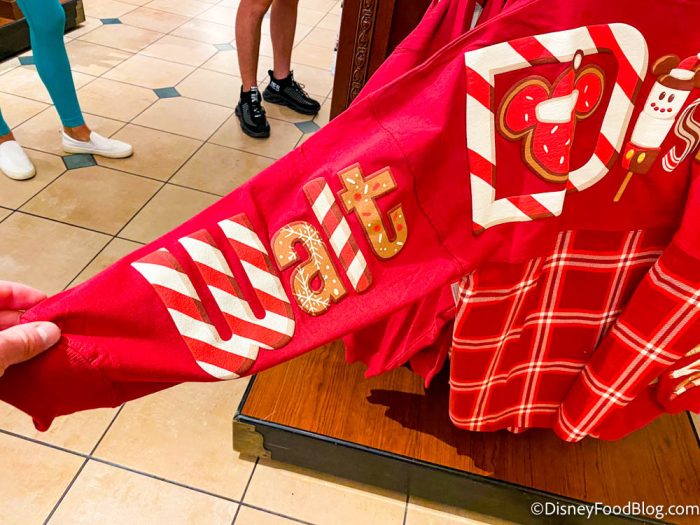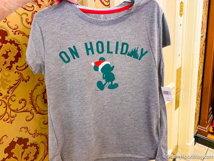 There was also a red t-shirt from the Walt’s Lodge collection with Mickey Mouse in a cozy scarf. This tee is $36.99.