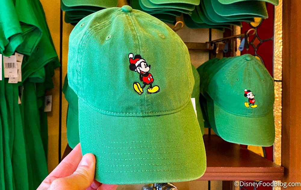 And there were a couple of baseball-cap style hats available with holiday characters. The green hat has Mickey in a Santa hat.
