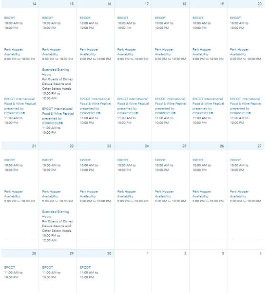 Over in EPCOT, we’ve seen an extension for November 21st-27th. Initially, the park was set to open at 11AM these days, but the hours are now 10AM to 10PM.