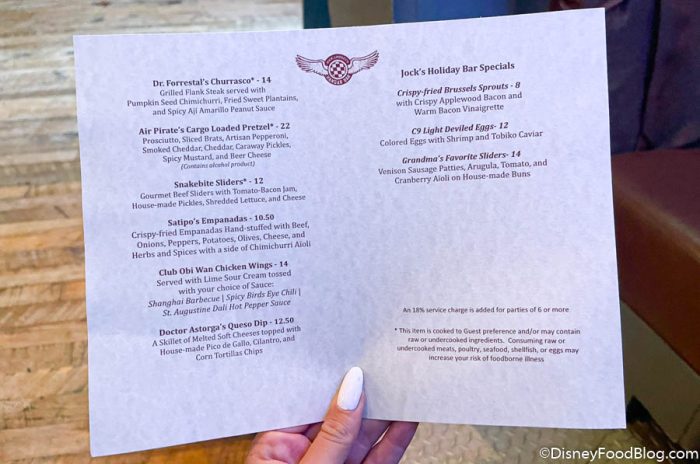 We’ve seen festive snacks in the parks already, but now it’s time to branch out and try some treats in Disney Springs. We’re heading to Jock Lindsey’s Hangar Bar to check out the holiday overlay and try some drinks and eats!