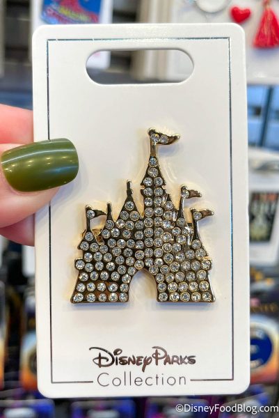 There were also LOTS of new pins in EPCOT, like this sparkly castle pin for $17.99.