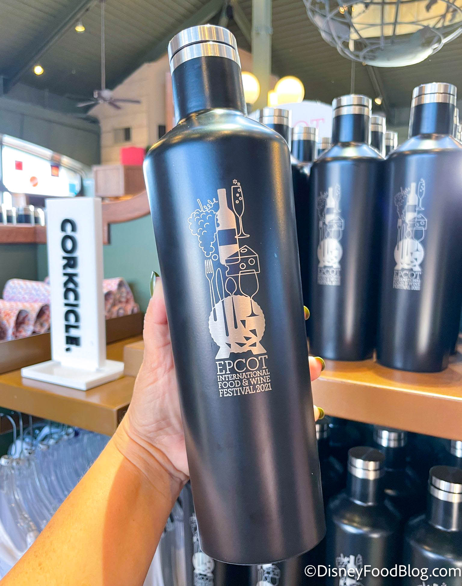 In Port of Entry we noticed this new-to-us Black Corckcicle Tumbler for $39.99. The front of the tumbler features the 2021 EPCOT Food and Wine Festival artwork.