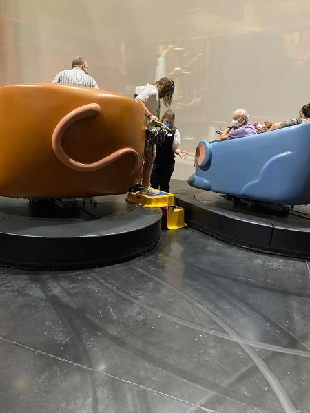Guests used a step stool to exit the cars to avoid standing on the attraction vehicles. From there, families were safely walked out of the attraction.