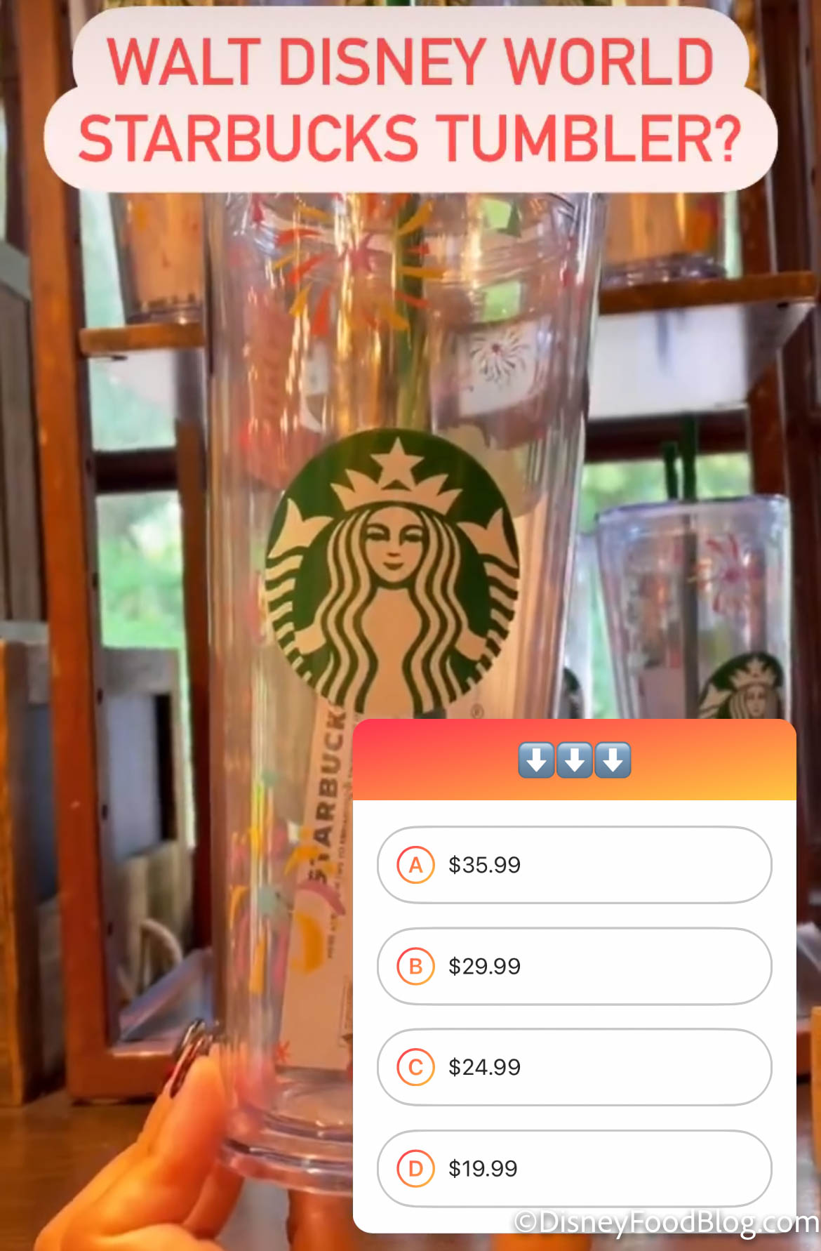 And of course, who doesn’t want a Disney World Starbucks Tumbler?! We’ve seen lots of special Starbucks tumbler designs, but a classic tumbler with a Disney World design costs $24.99. Many of our readers guessed this one right, but a lot of people guessed $29.99.