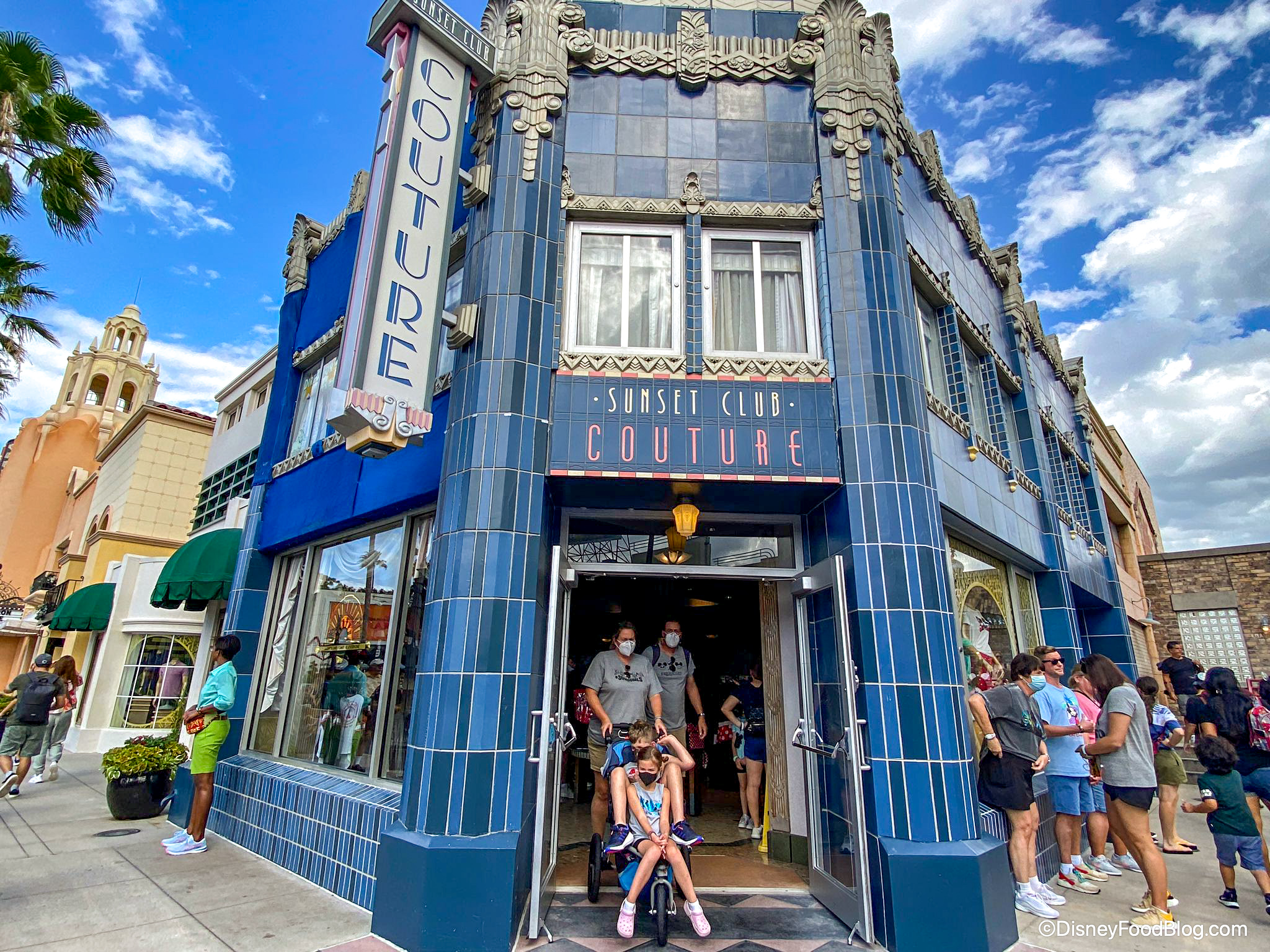 A few weeks ago, we spotted some extra construction tarp around Sunset Club Couture on Sunset Boulevard. But, it looks like Disney is nearing the end of the refurbishment here, as now only part of the blue covering remains on the building.
