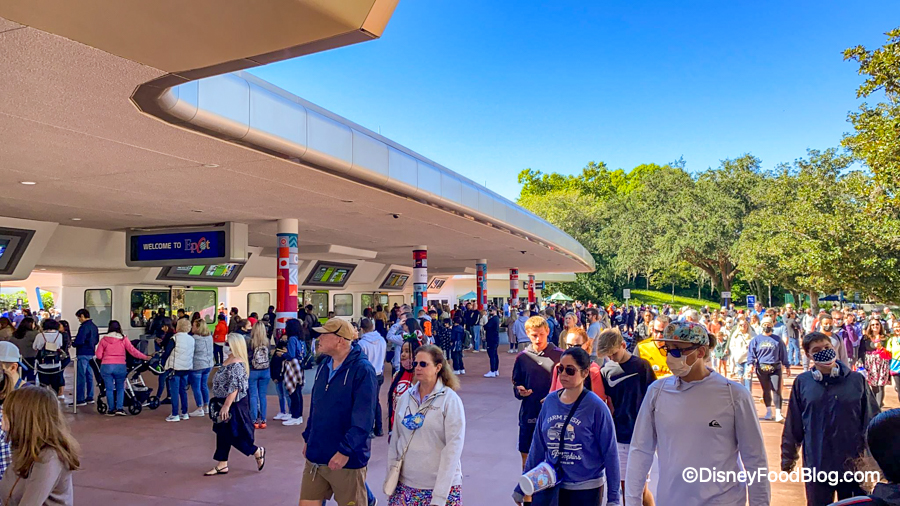 Now that the holiday season is here (!!!) and travel restrictions are being lifted around the world, Disney World has been seeing longer lines and higher wait times. On our way into EPCOT today, we definitely felt the impacts of these changes. Take a look at the crowd level on this sunny Sunday!