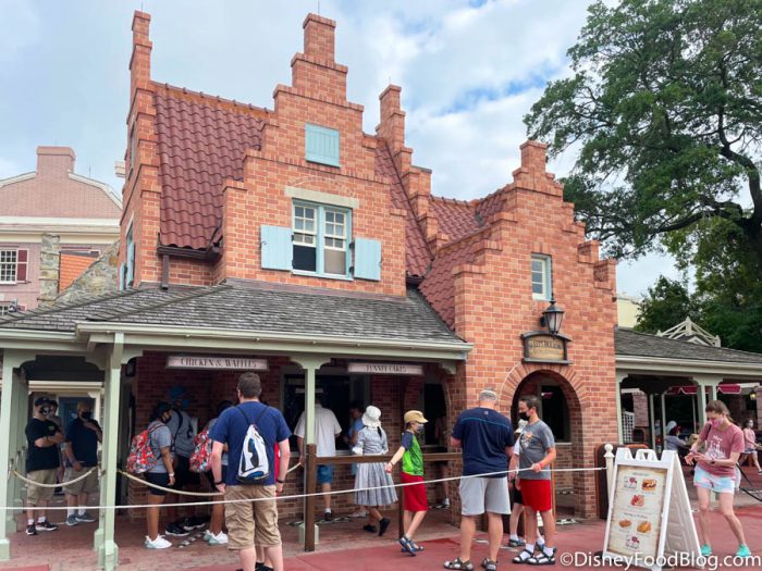 Sleepy Hollow Refreshments in Magic Kingdom’s Liberty Square is known for delicious treats like chicken and waffle sandwiches, funnel cakes, and seasonal drinks like the Doom Berry!