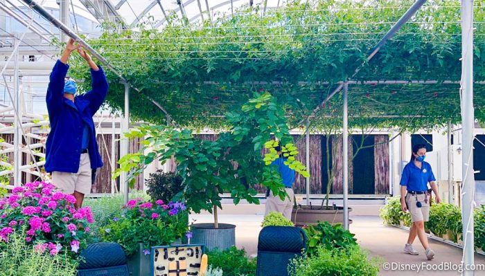 Also, who doesn’t want to see Mickey-shaped vegetables? This ride also gets a fun holiday overlay! Cause what’s better than seeing a giant tomato plant? A giant tomato plant AND festive lighting.