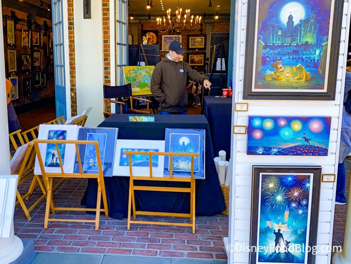 You can find a lot of his vibrant artwork sold in the store including prints of fireworks in front of Spaceship Earth and the Partners Statue.