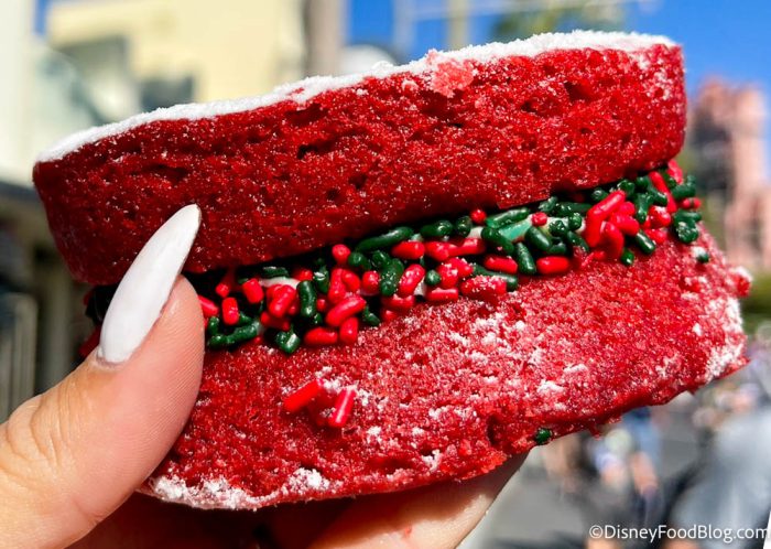Over at Backlot Express and Trolley Car Café, the Red Velvet Whoopie Pie has made its return as well! It’s made with red velvet cake filled with classic cream cheese filling and festive sprinkles! You can grab one for $4.99.