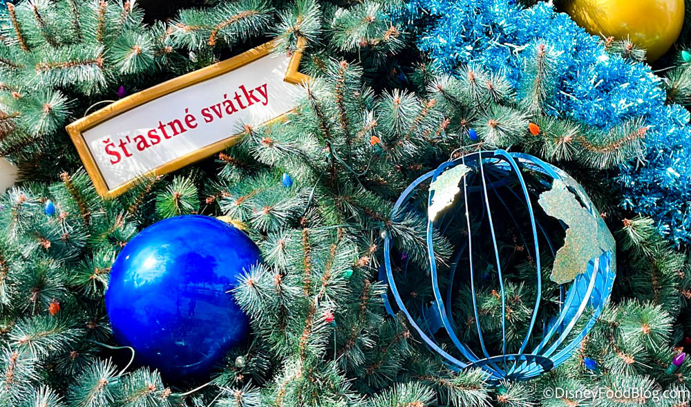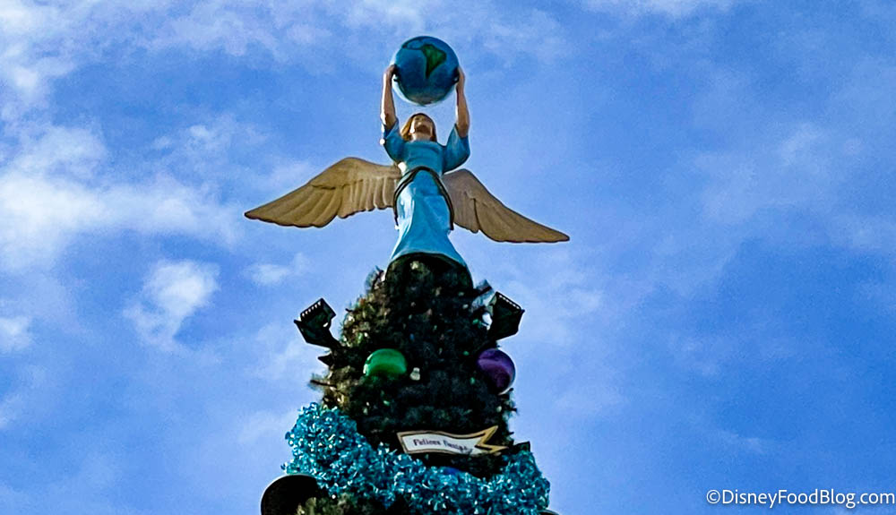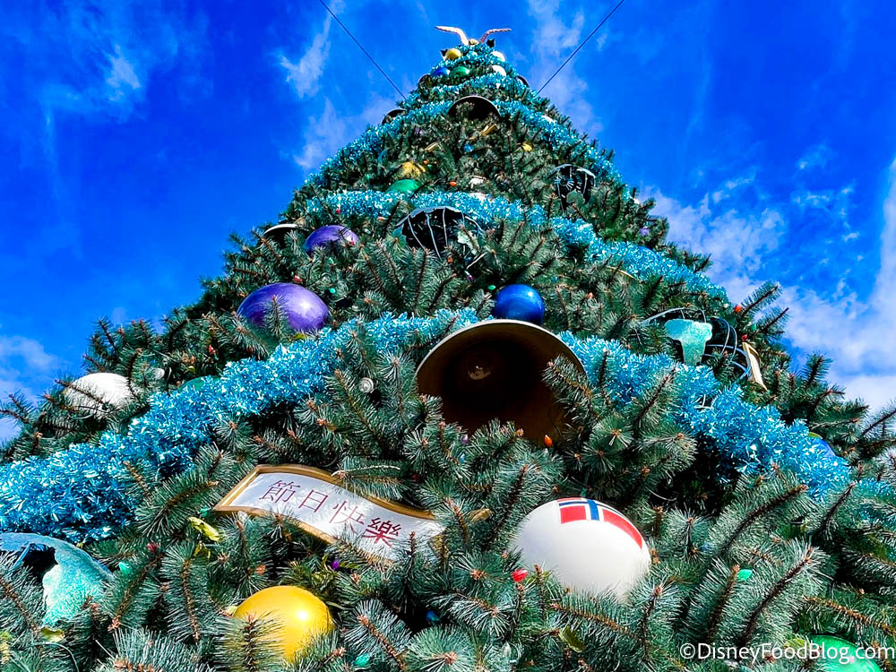 But the biggest addition is the giant Christmas tree, located at the entrance to World Showcase. Many of the decorations are blue this year — likely to play into the 50th anniversary decor around the parks.
