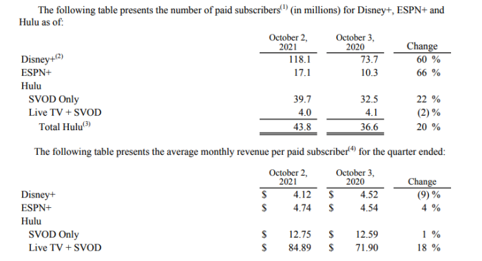 Note, however, that the average monthly revenue per paid subscriber actually went DOWN for fiscal year 2021. Disney notes that this is “due to a higher mix of Disney+ Hotstar subscribers in the current quarter compared to the prior-year quarter.”