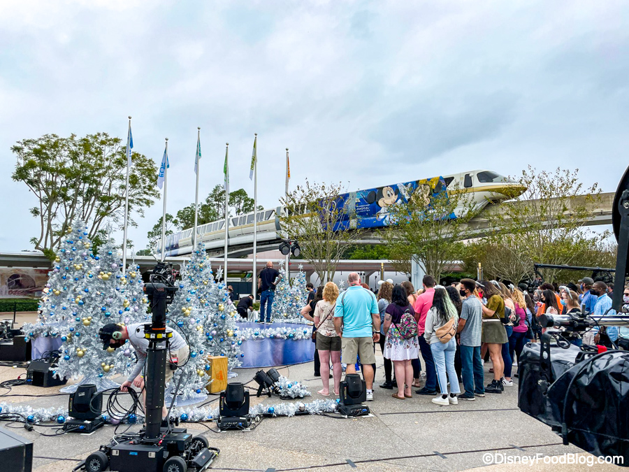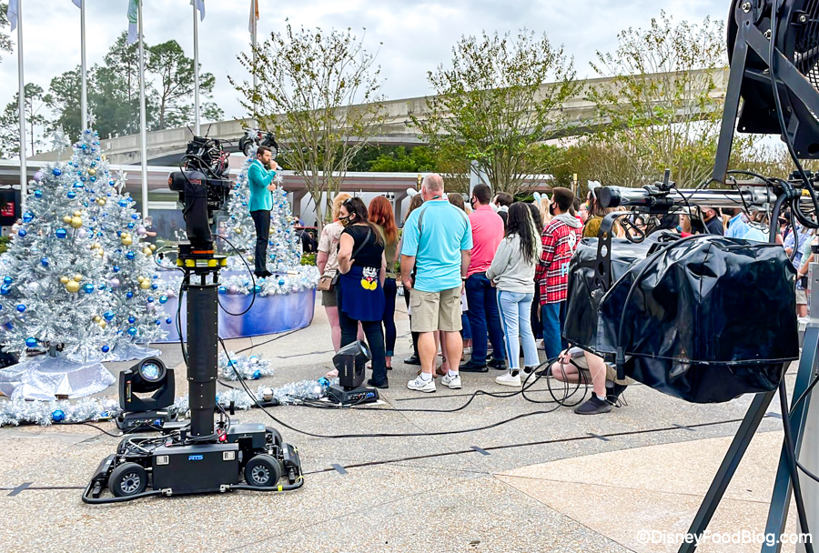 We know — we’re not even halfway through November and it feels like Halloween decoration just came down, but Disney is already fully celebrating the holidays! The first Disney Very Merriest After Hours event took place the other night, Christmas trees and gingerbread houses are up around the parks and hotels, and there’s even festive food available! Something a lot of people look forward to every year is the Disney Christmas Special that airs on Christmas Day on ABC, and today, we saw filming for the special taking place in EPCOT!