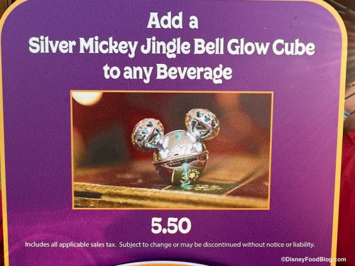 If you want to grab this jingle bell glow cube, you can grab it from the Merry Mashups food booth. and add it to any drink for $5.50.