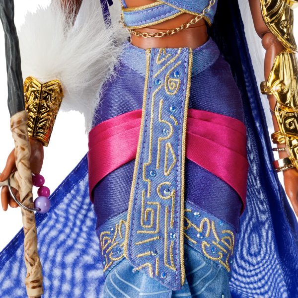 The doll is beautifully designed, has a detailed staff, and golden metallic armor with gems on it.