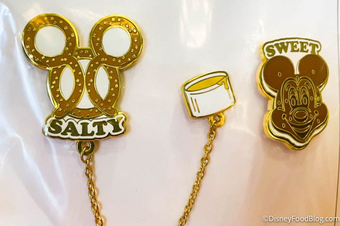 Technically it’s part of a set that includes a “salty” Mickey pretzel pin and a “sweet” Mickey ice cream sandwich pin.