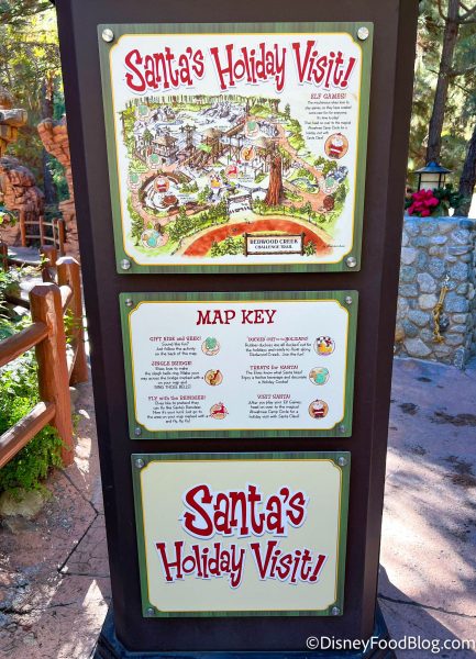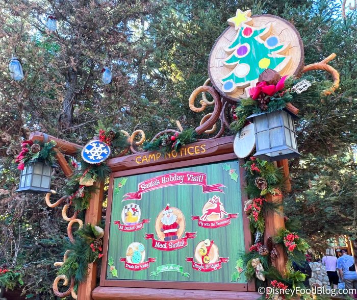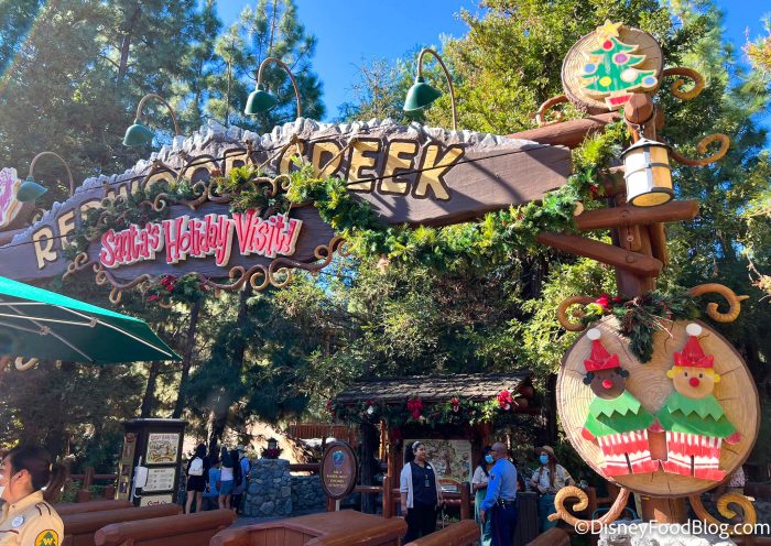 Now in Disney’s California Adventure, the Redwood Creek Challenge Trail has been transformed into Santa’s Holiday Visit. In addition to all the holiday decor, you can also meet Santa!