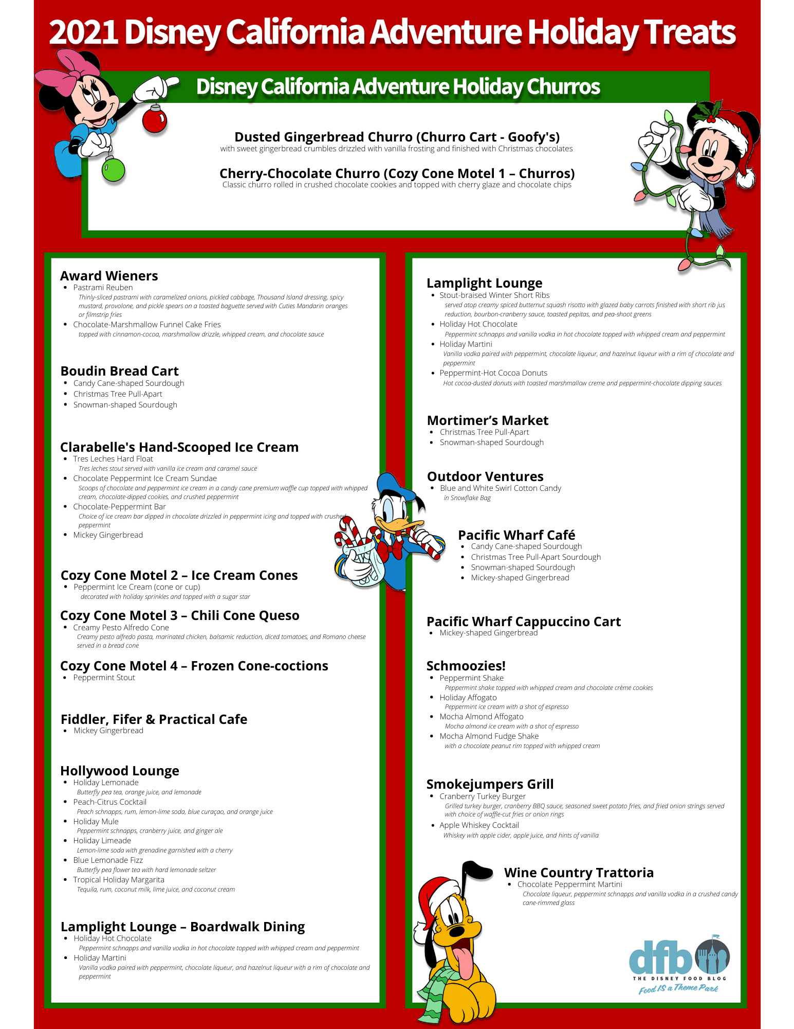 And, this year we aren’t messing around with your average milk and cookies, we’re trying everything from Peppermint Beignets, to GIANT Peppermint Milkshakes, to CHURRO Funnel Cakes, and more! But, with all the specialty snacks at Disneyland Park and Disney California Adventure PLUS all of the eats and drinks for the Festival of Holidays, how can you possibly keep track of everything you’d like to try? We gotchu!