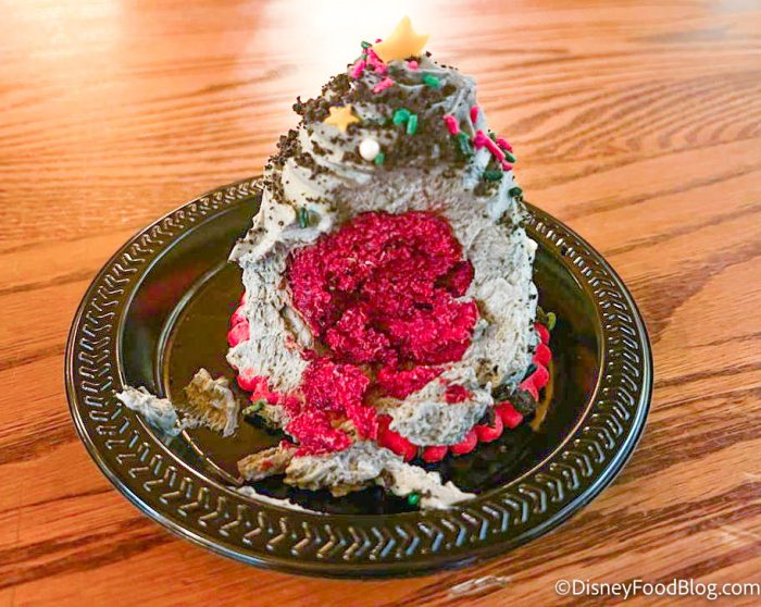 The inside of the Holi-Grey Stuff is filled with red velvet cake, and it tasted like our same fave Grey Stuff, just with a holiday makeover.