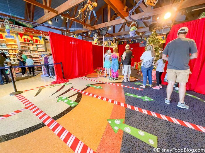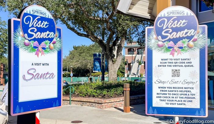 But, it’s not quite as simple as going there and standing in line. To see Santa, you’ll need to sign up through the virtual queue. When you arrive at Once Upon a Toy, check for a sign with a QR code.