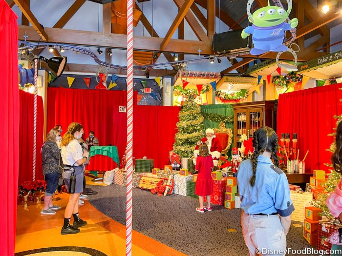 Over at Disney Springs, fans can say “hello” to the man himself, Santa Claus, without a park ticket! To see him, you’ll want to head over to Once Upon a Toy.