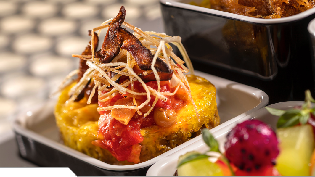 Recently, Disney released some more information about just what dining on The Halcyon (the ship you’ll board as part of the Star Wars: Galactic Starcruiser experience) will be like. Let’s start with breakfast. Breakfast aboard the Star Wars hotel will be served in the Crown of Corellia Dining Room. Disney has shared that you’ll be able to “help yourself to colorful fare from all over the galaxy — along with familiar favorites from your home planet.”