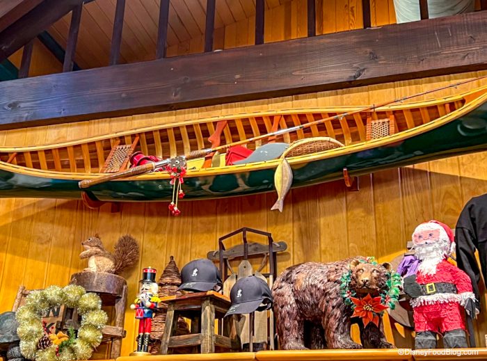 Along with the usual fishing and rafting-inspired decor, you’ll find stuff like nutcrackers, little Santas, and even a bear wearing a wreath as a necklace!