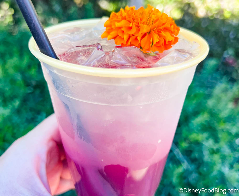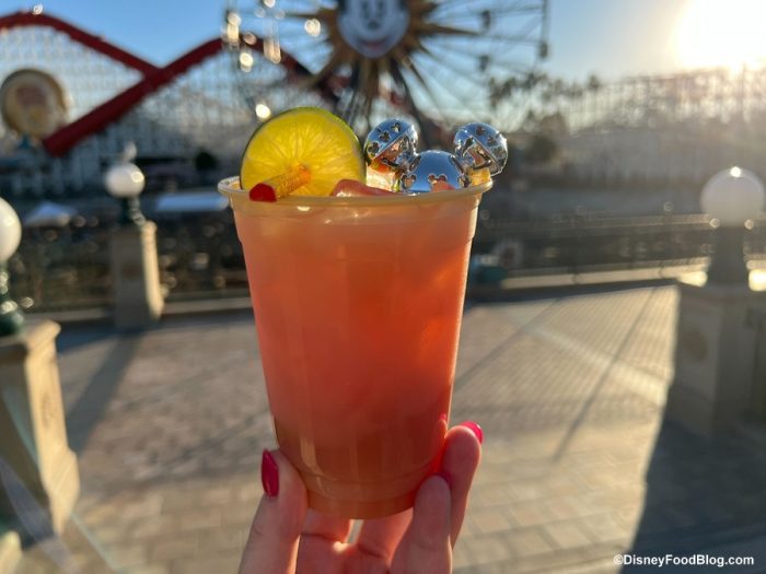 The Honey Guava Pisco Punch (which is made with Pisco brandy, guava juice, spicy honey syrup, ginger, and lime juice) is undoubtedly a pretty drink in terms of color and it looks even better if you get the Mickey jingle bell sipper on top. Plus, it tastes great too! You can check it out for $14 (plus $5.50 for the glow cube).