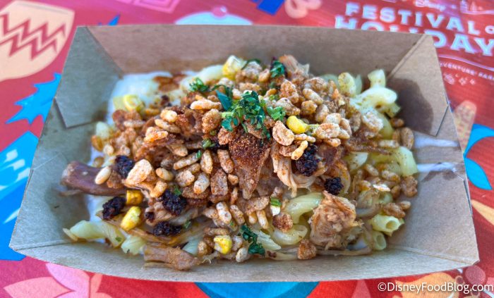 This is another CONTROVERSIAL pick alert! The Esquites Carnitas Mac & Cheese from Merry Mashups features Oaxaca and Cotija cheeses with spiced puffed rice.