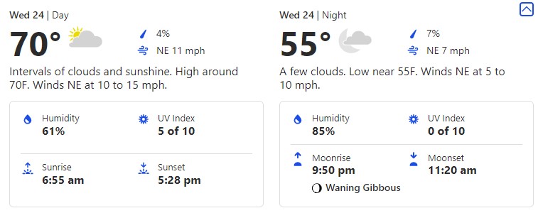 The next day, November 23rd brings us a COOLER day with a high of 62 degrees during the day and keeping that low down at a brisk 48 degrees.