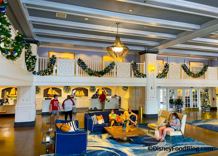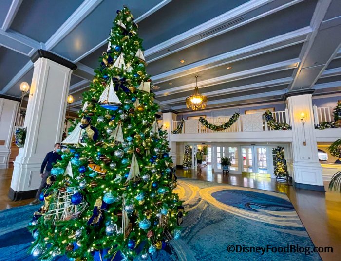 We’ve already seen the stunning Christmas village on display at Disney’s Yacht Club — it’s got a train and everything! But today, the rest of the holiday decor was up, to0!
