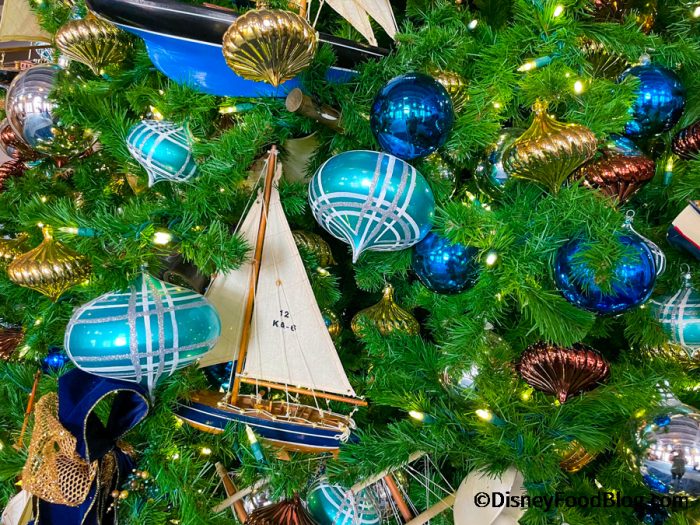 The tree’s decorations mirror the Yacht Club’s theme, so it’s very nautical.