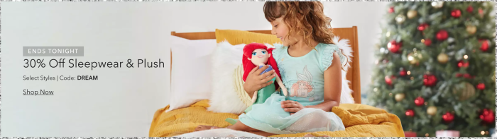 Today, November 21st, only, shopDisney is offering both free shipping (with code FREESHIP) and 30% off sleepwear and plush (with code DREAM), and yes, you can apply both to your order.