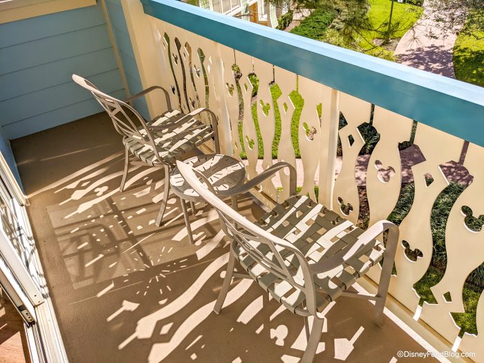 Next to the Murphy bed, you’ll find a sliding glass door to the room’s balcony!